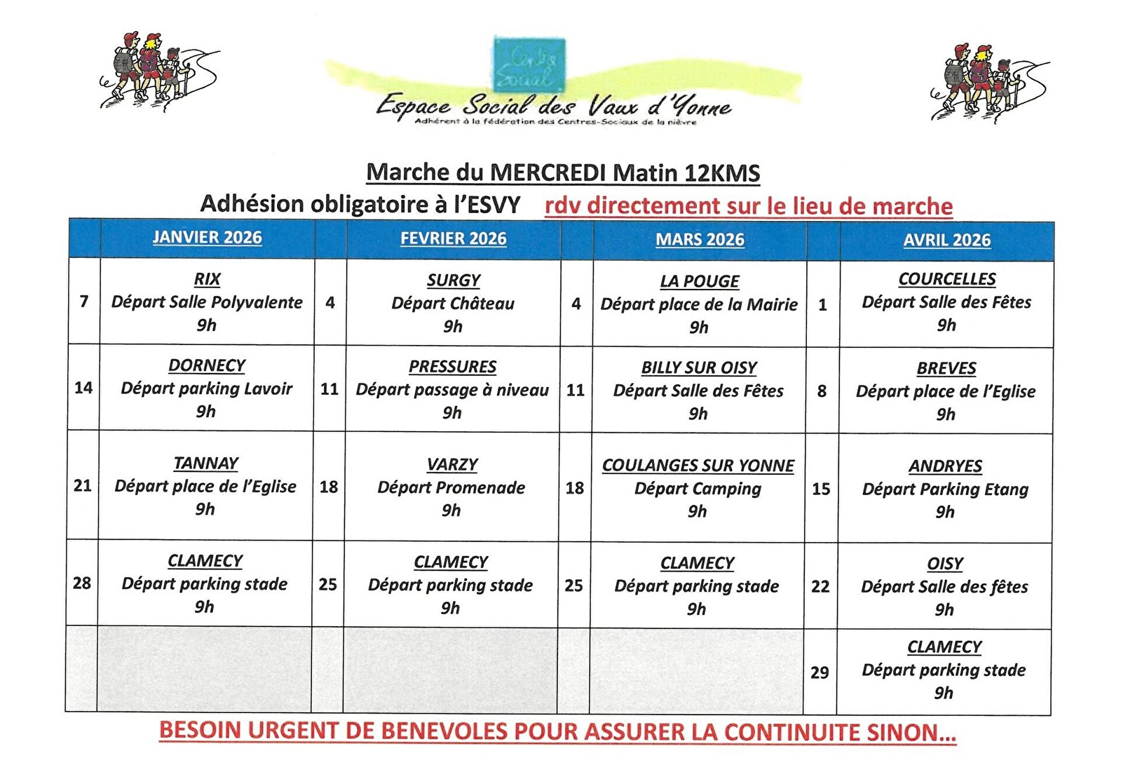 Marches du mercredi matin : 12 km - Départ à 9h sur site
