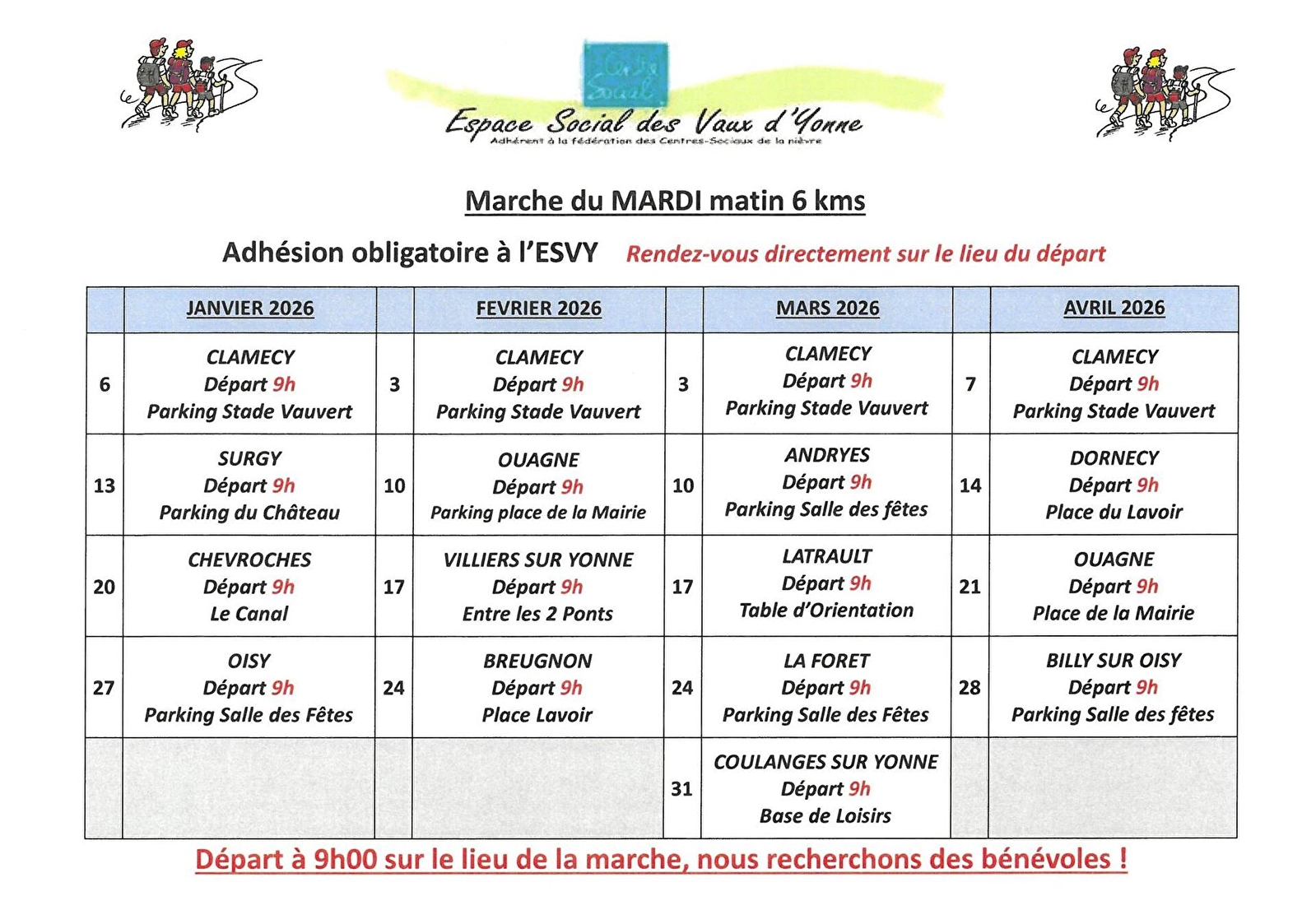 Marches pedestres avec l'Espace Social des Vaux d'Yonne - 6 km