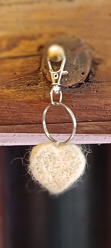 Au sein de la chèvrerie (si le temps le permet), je vous propose de vous guider dans la confection d'un porte-clés en forme de cœur, en mohair ou en laine de mouton à votre choix, les deux pouvant être mélangés.