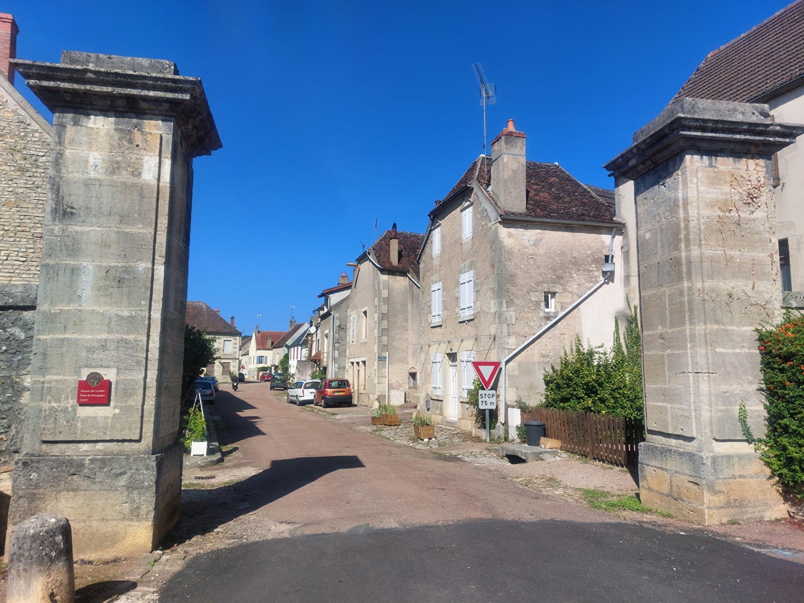 Descriptif techniqueD - Au départ de la place des Fontaines, prendre la rue du Moulin et, au bout, tourner à gauche. Passer le ruisseau Armance et suivre la route en direction de Sur-Yonne et Villiers-sur-Yonne.
