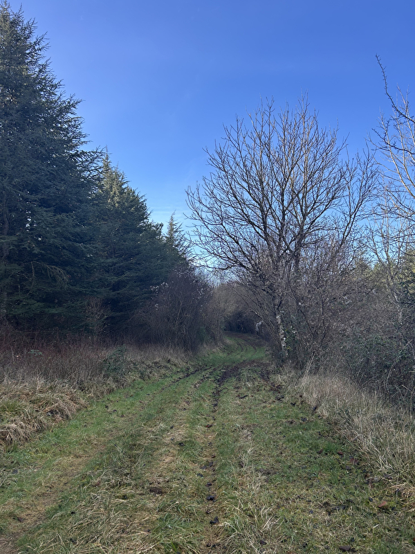 - L'emprunter à gauche sur 600m, d'abord en forêt puis en lisière. Atteindre une route goudronnée.