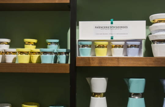 Diing ! Besoin de renforts à la boutique ! Carole quitte son atelier pour aller conseiller les clients venus admirer ses pièces. Faïencerie traditionnelle ou modèles plus modernes et design, chacun y trouve une pièce à son goût.