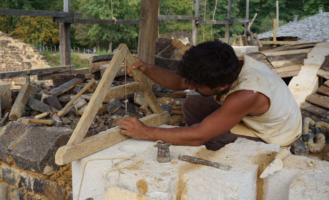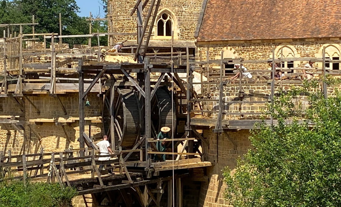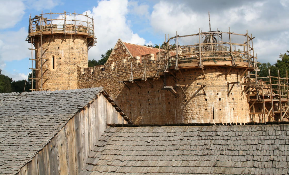 Là-bas 50 oeuvriers bâtissent depuis 20 ans sous vos yeux un véritable château-fort avec les techniques et matériaux du Moyen-Age. Une expérience unique à vivre en famille et une véritable plongée dans cette époque, c’est autre chose qu’un musée poussiéreux !