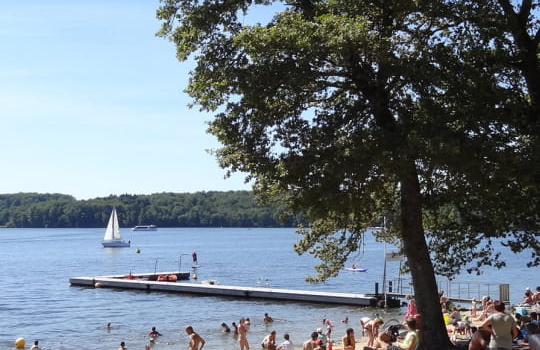 Avec ses nombreuses plages naturelles qui bordent le lac, vous avez l'embarras du choix pour poser vos serviettes : à l’ombre des grands arbres au sud du lac, loin de tout, ou bien sur la plage surveillée labellisée Pavillon Bleu, gage de grande qualité environnementale et de bonne gestion de l’eau et des déchets.