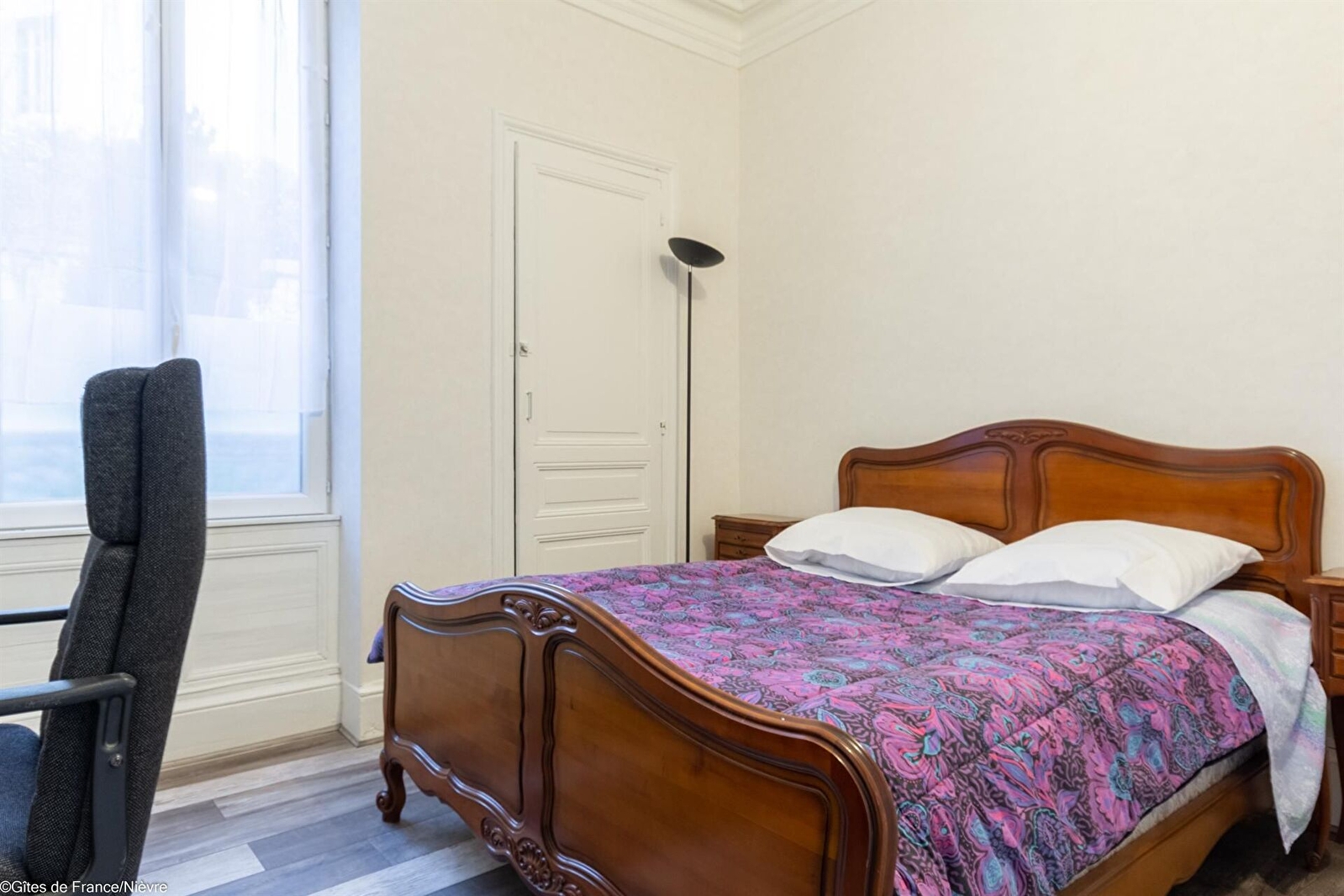 A proximité des attraits touristiques de Nevers, en rez-de-chaussée surélevé, appartement cosy avec une pièce à vivre lumineuse salon/salle à manger, une cuisine équipée avec accès à une terrasse privative (le jardin est exclusif au propriétaire), une chambre avec 1 lit 140x190, un wc séparé, une salle d'eau (douche).