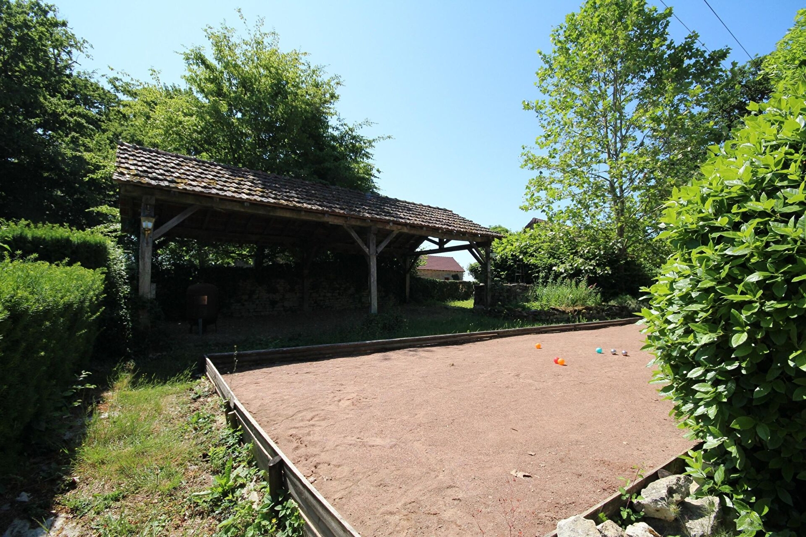 Terrain de pétanque, balançoire, trampoline, abri barbecue, piscine et sa plage de détente.