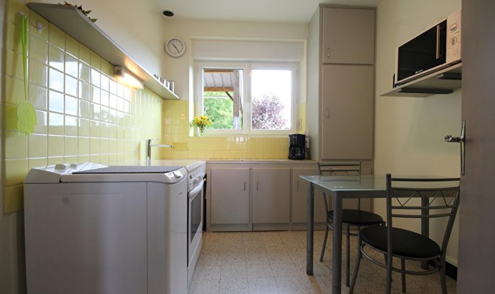 Séjour, cuisine, 2 chambres avec 1 lit 90x190cm dans l'une et 1 lit 140x190cm dans l'autre, salle de bains, wc indépendant, chauffage central facturé selon consommation. Abri voiture, terrasse, mobilier de jardin. Parking privé. Sur demande : lit bébé, chaise haute, baignoire enfant, matelas à langer, ping-pong.