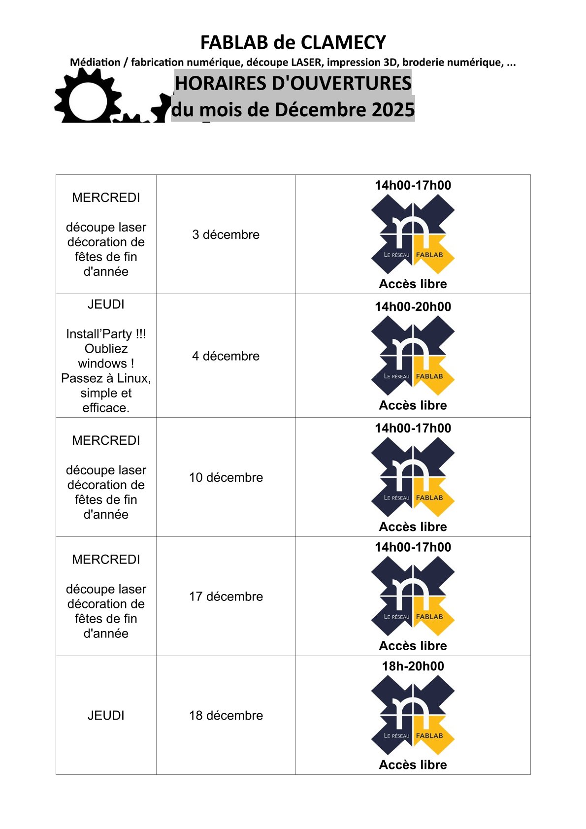 Fablab : Médiation/fabrication numérique, découpe laser, impression 3D, broderie numérique