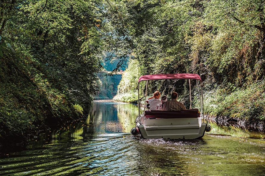 En bateau électrique sur le Canal du Nivernais à l'approche des voûtes de la Collancelle Lezbroz