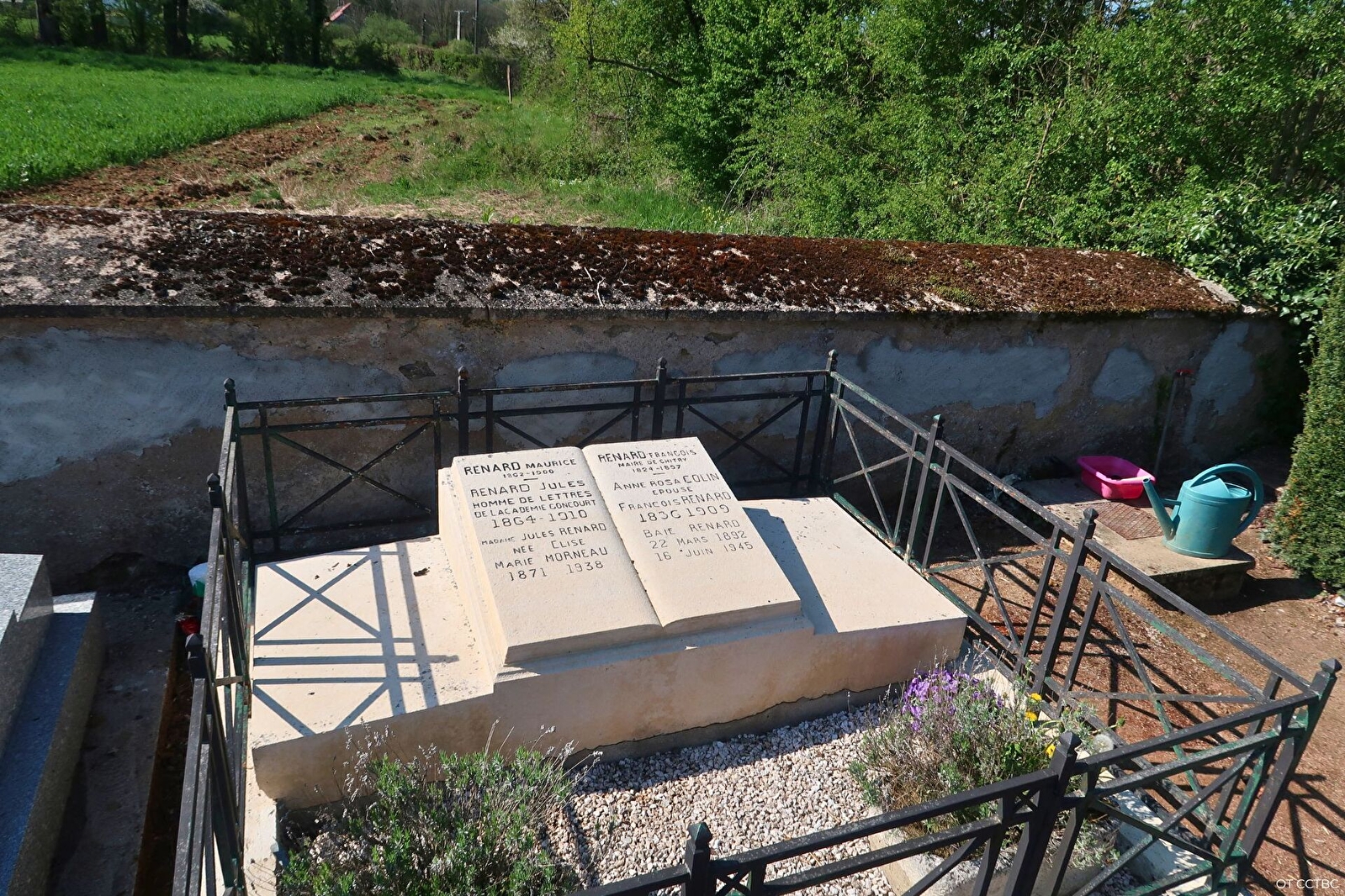 Descriptif techniqueAu départ de la mairie, dirigez-vous vers l'église pour en faire le tour par la gauche. Empruntez le passage en face entre les deux habitations. Tournez à droite sur la rue du Crot du Lac, puis à chaque intersection prenez la rue de gauche. A la troisième, continuer 5 mètres et faites demi-tour devant la maison Paternelle. Tourner à gauche au premier croisement, puis de nouveau à gauche sur la grande rue. Continuer tout droit, puis après avoir traversé le pont du Canal, tournez à gauche. Marchez jusqu'à La Gloriette puis faites demi-tour. Reprenez la grande route à droite puis bifurquez à gauche par le pont du Tacot. Tournez à gauche au lavoir que vous passerez pour continuer tout droit dans le chemin. Au bout de celui-ci, tournez à droite puis à gauche à la route. Allez jusqu'au cimetière où il y a la tombe de Jules Renard, puis revenez vers le centre-bourg.