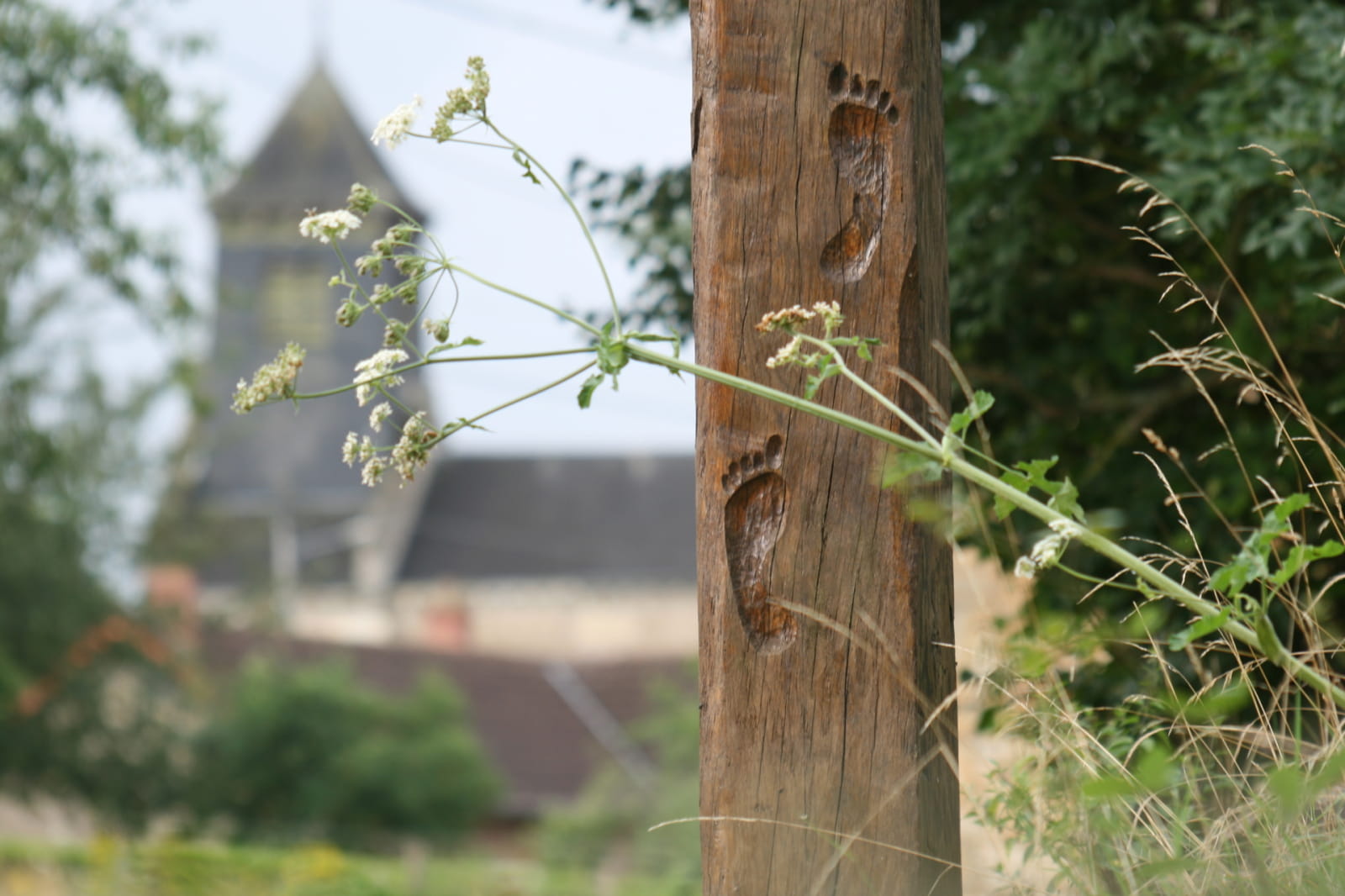 « La borne Saint-Jacques » posée là au bord du chemin de Saint-Jacques de Compostelle pour rappeler que le pèlerin chemine horizontalement mais aussi verticalement. C'est une réalisation de l’artiste plasticien François Davin et des habitants de Nannay.